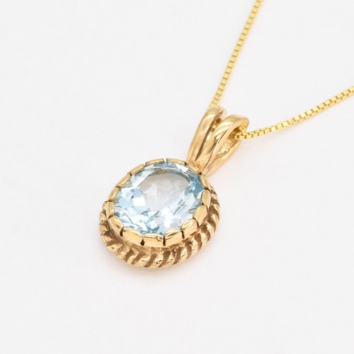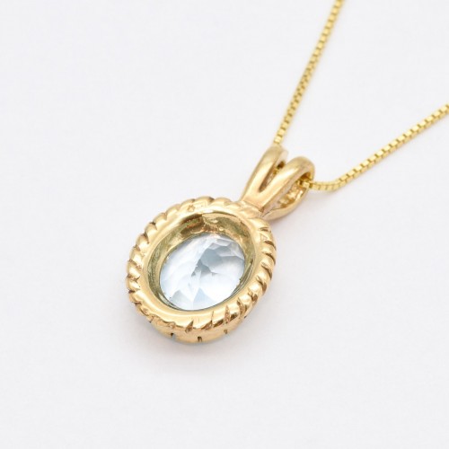 Gold Topaz Pendant set with a Natural Blue Topaz in a perfect diamond cut, flawless clarity & sky blue color, at 10x8mm (3 Cts) from Brazil.