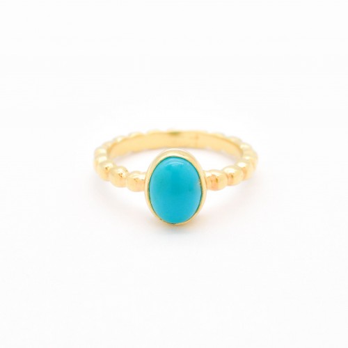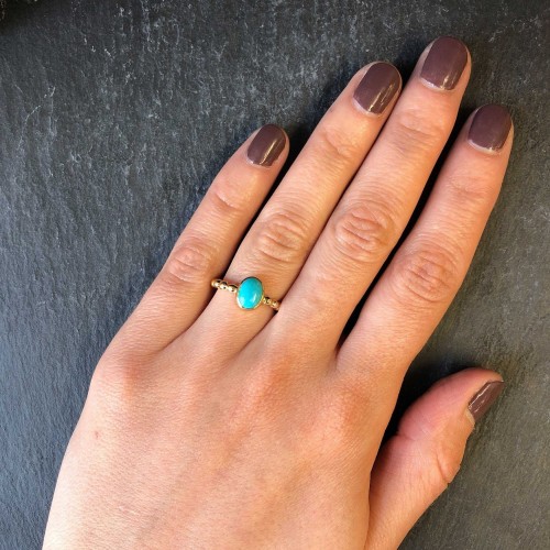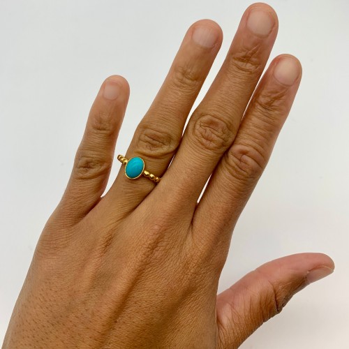 Gold Turquoise Ring set with Natural Turquoise in a beautiful blue color, at size 8x6mm (2 Cts) from Arizona.