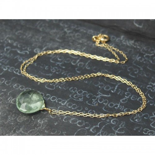 - Green Amethyst Necklace On Gold Filled Chain With Gold Filled Spring Clasp