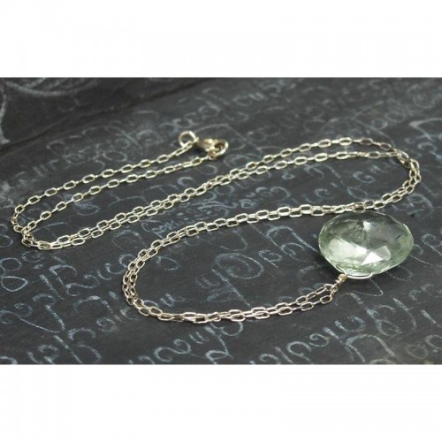 - Green Amethyst On Sterling Silver Chain With Sterling Silver Spring Clasp