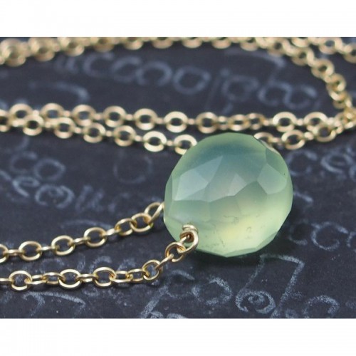 - Green Apple Chalcedony Necklace On Gold Filled Chain With Gold Filled Lobster Claw Clasp