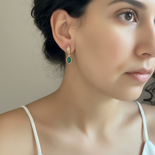 Green Emerald Earrings – Vintage Drop Earrings – Gold Tribal Earrings