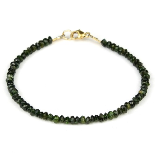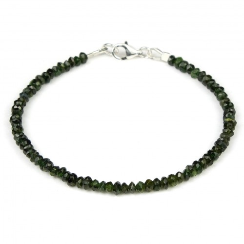 - Green Tourmaline 3mm Faceted Rondells Bracelet with Sterling Silver Trigger Clasp