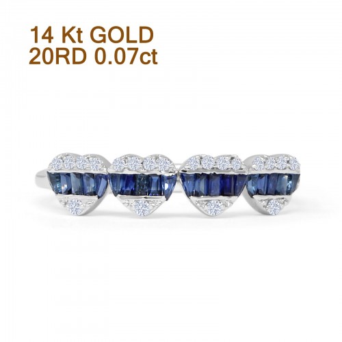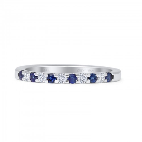 Half Eternity 2mm Round Natural Diamond & Blue Sapphire Ring 14K White Gold Wholesale 6.5