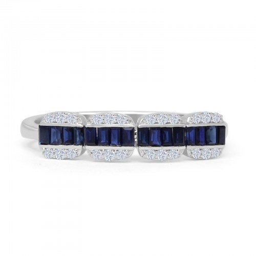Half Eternity Cushion Cut Blue Sapphire & Natural Diamond Band 14K White Gold wholesale 6.5