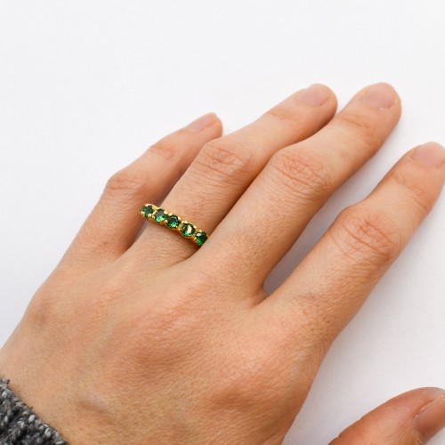 Half Eternity Emerald Ring set with Created Emeralds in a flawless clarity & vivid green color at size 3mm each (1 Ct combined).