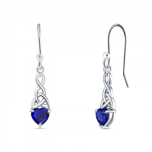 Round Black Onyx Celtic Knot Heart Fishhook Earring 925 Sterling Silver