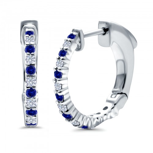 Half Eternity Huggie Hoop Earrings Round Simulated Blue Sapphire CZ 925 Sterling Silver (14mm)