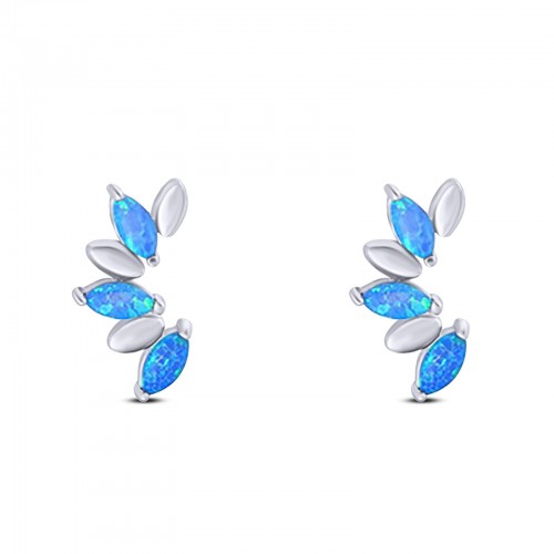 Halo Art Deco Stud Earring Round Simulated Cubic Zirconia Created Blue Opal Solid 925 Sterling Silver (8.2mm)