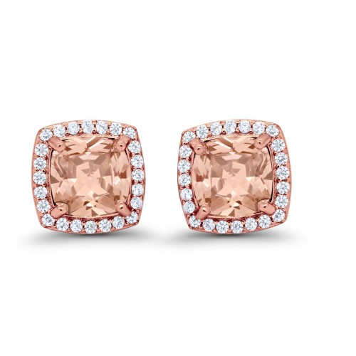 Halo Cushion Bridal Earrings Simulated Ruby CZ 925 Sterling Silver