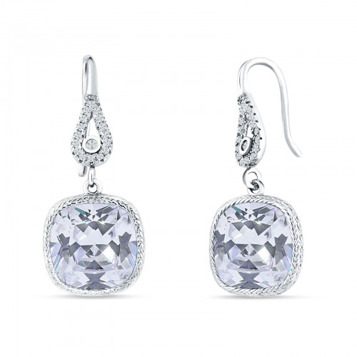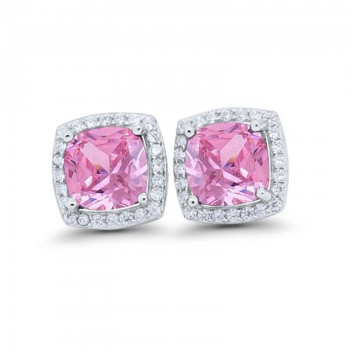 Halo Cushion Leverback Earrings Rose Tone, Simulated Morganite CZ 925 Sterling Silver