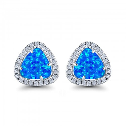 Halo Stud Earring Lab Created Blue Opal Simulated CZ 925 Sterling Silver (11mm)