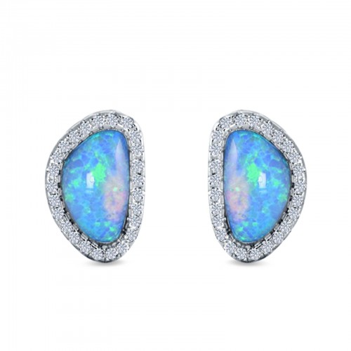Halo Stud Earrings Lab Created Blue Opal Simulated CZ 925 Sterling Silver (12mm)