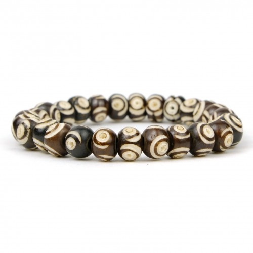 Hand Carved Cow Bone 10mm Eye Bead Stretch Bracelet
