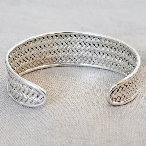 Handwoven .925 Sterling Silver Cuff Bracelet from Bali