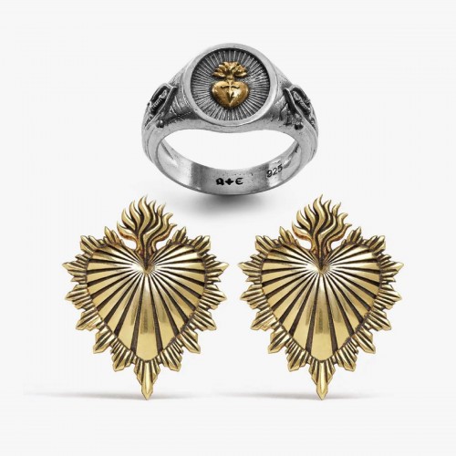 A duet of hearts, orbiting industrial ruggedness and delicate refinement in our reimagination of captive bead jewelry.