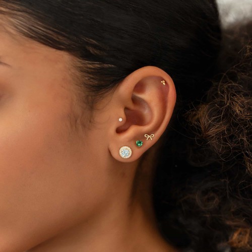 Heart Crystal Gemstone Studs Emerald 14K Gold