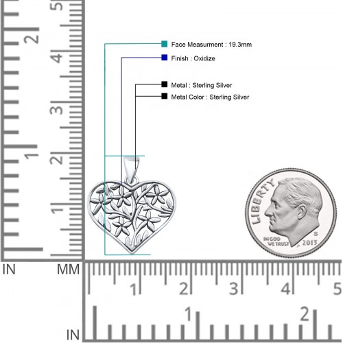 This heart & flowers charm pendant necklace is crafted in 925 sterling silver with an oxidized filigree vintage finish. The 19.3mm heart-shaped design adorned with delicate flowers symbolizes love and beauty, making it a thoughtful and timeless gift for her.