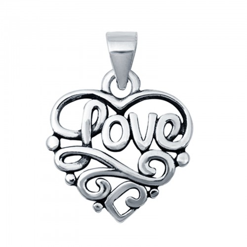 Heart & Love Charm Pendant 925 Sterling Silver (15mm)