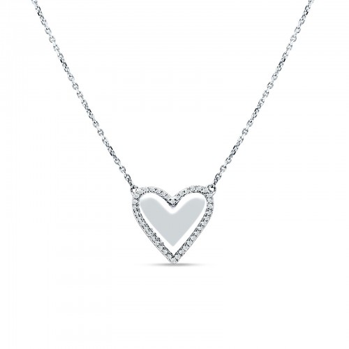 Heart Pendant Diamond Necklace 14K White Gold 0.07ct Wholesale
