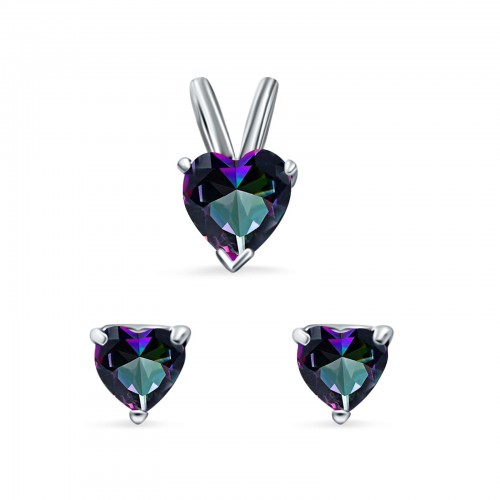 Heart Shape Jewelry Set Pendant Earring Simulated Rainbow Cubic Zirconia 925 Sterling Silver