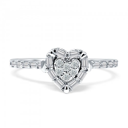 Heart Shaped Cluster Diamond Wedding Ring 14K White Gold 0.20ct Wholesale 7