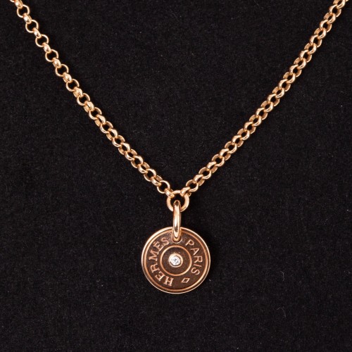 Hermès 18K Rose Gold Diamond Ex-Libris Pendant Necklace