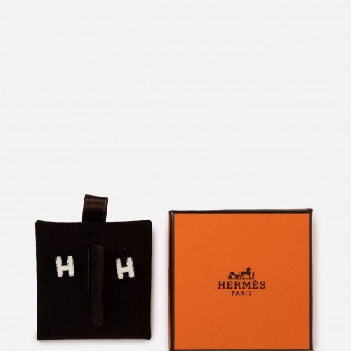 Discover these Hermès Olympe Ear Cuff in silver and black with calfskin detailing, featuring a modern and refined design. This piece is in excellent condition with only a few handling marks from display.