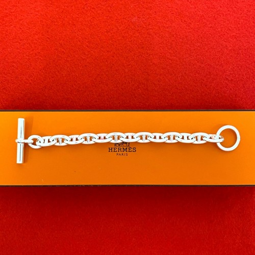 Hermes Super H Stainless Steel Leather Bangle Silver
