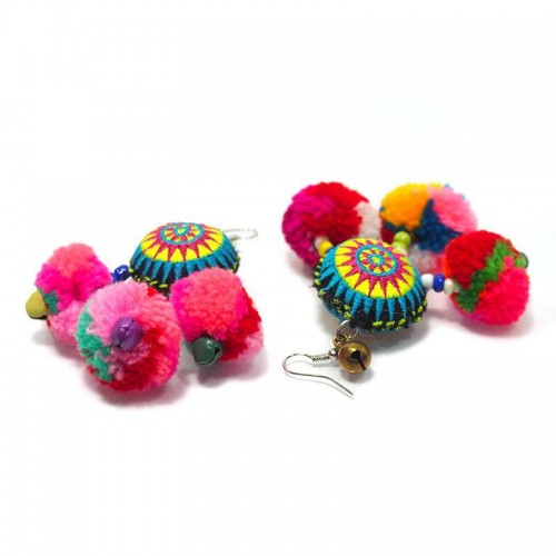 Hilltribe Crocheted Earrings with Pom Poms