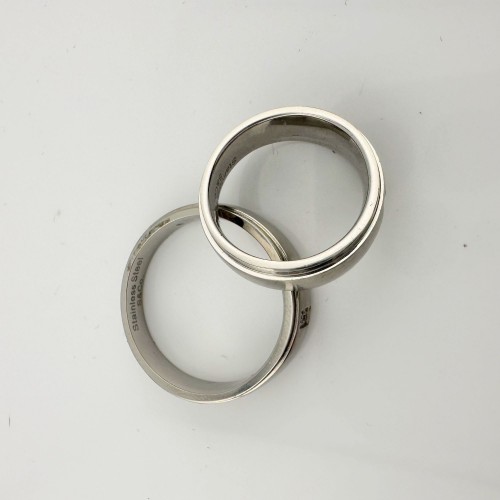 Simple yet classic and beautiful wedding band set. Natural mined diamonds in polished Stainless Steel band.