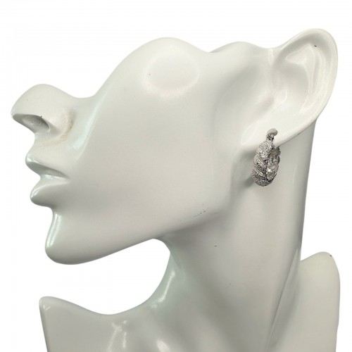 Pretty hoop earrings. These earrings have one small diamond and a lot of metal detailing to look like more shining diamonds. They are pretty when worn. Rhodium overlaying brass.
