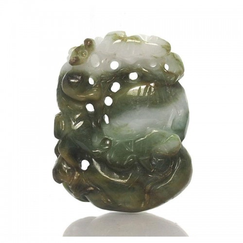 - This beautiful Jade carving is rich translucent mottled white color with areas of Olive Green color.