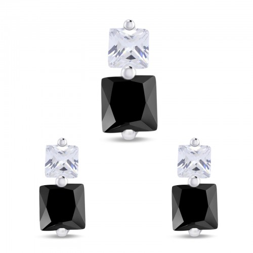 Jewelry Set Pendant Earring Oval Simulated Black Cubic Zirconia 925 Sterling Silver