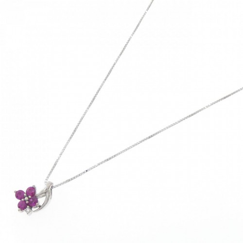 Item name : K10 White Gold Flower Ruby Diamond Necklace