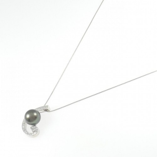 K18WG Black Pearl Diamond Necklace 18K White Gold