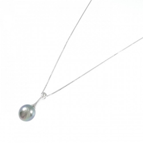 K18WG Black Tahitian Pearl Necklace Silver 18K White Gold