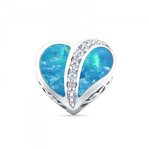 Love Heart Charm Pendant Lab Created Black Opal 925 Sterling Silver