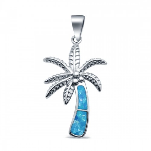 Lab Created Blue Opal Palm Tree 925 Sterling Silver Charm Pendant