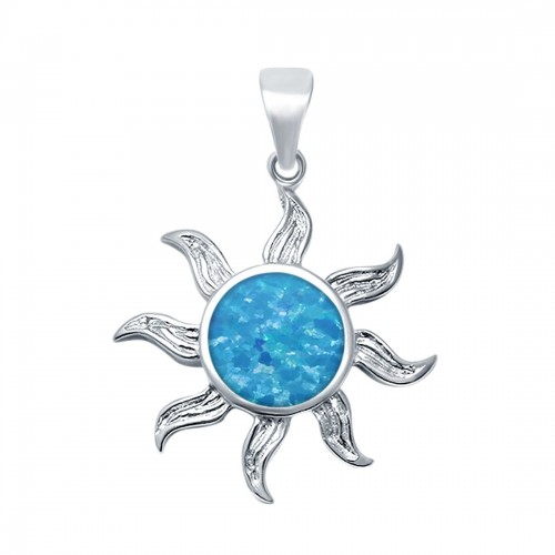 Lab Created Blue Opal Sun Surf Celestial 925 Sterling Silver Charm Pendant