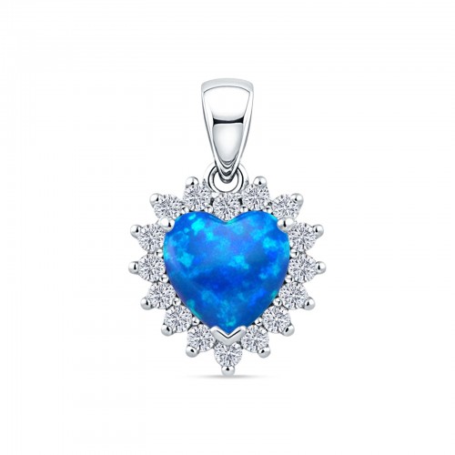 Lab Created Light Blue Opal & Halo CZ Heart Pendant 925 Sterling Silver
