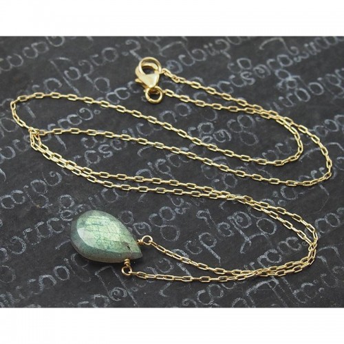 - Labradorite Necklace On Gold Filled Chain With Sterling Gold Filled Trigger Clasp