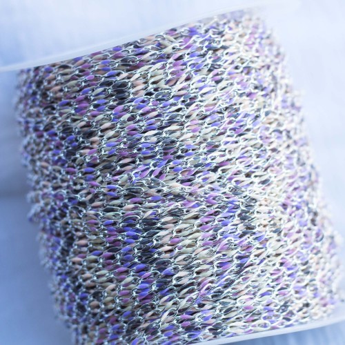 Lavender Multi Color Enamel Chain, SP102 Sterling Silver