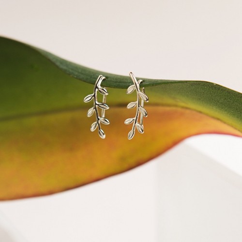 Sterling Silver leaf ear climber earrings with a nature-inspired design. Sleek and effortless, they fasten with a rear wire for a secure and comfortable fit.