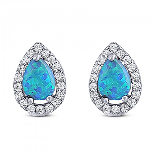 Leaf Stud Earring Created Blue Opal Solid 925 Sterling Silver (10mm)