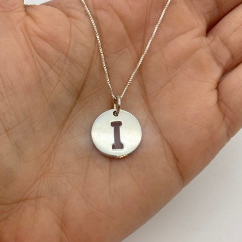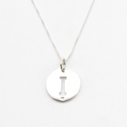 Letter I Silver Disc Pendant – Initial Necklace – Minimalist Letter Necklace