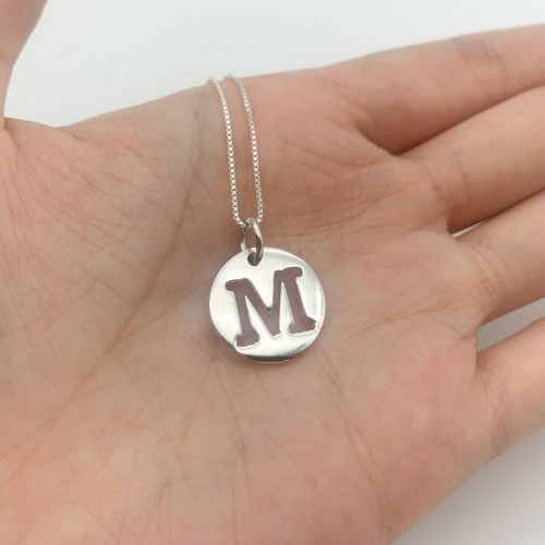 Letter M Silver Disc Pendant made of Solid 925 Sterling Silver ☞ made to last.