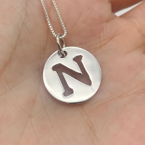 Letter N Silver Disc Pendant made of Solid 925 Sterling Silver ☞ made to last.