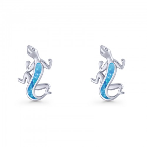 Lizard Stud Earring 13.7mm Lab Created Blue Opal 925 Sterling Silver Wholesale