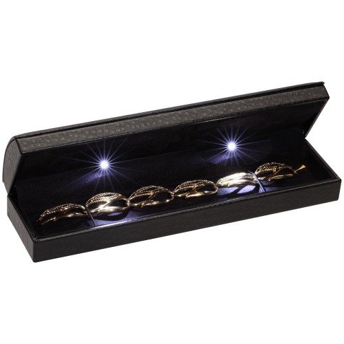 Our exclusive Lumina Classica Collection boxes feature curved lids encasing soft interior LED lighting, and vegan ostrich leather exteriors with white or black vegan suede interiors.